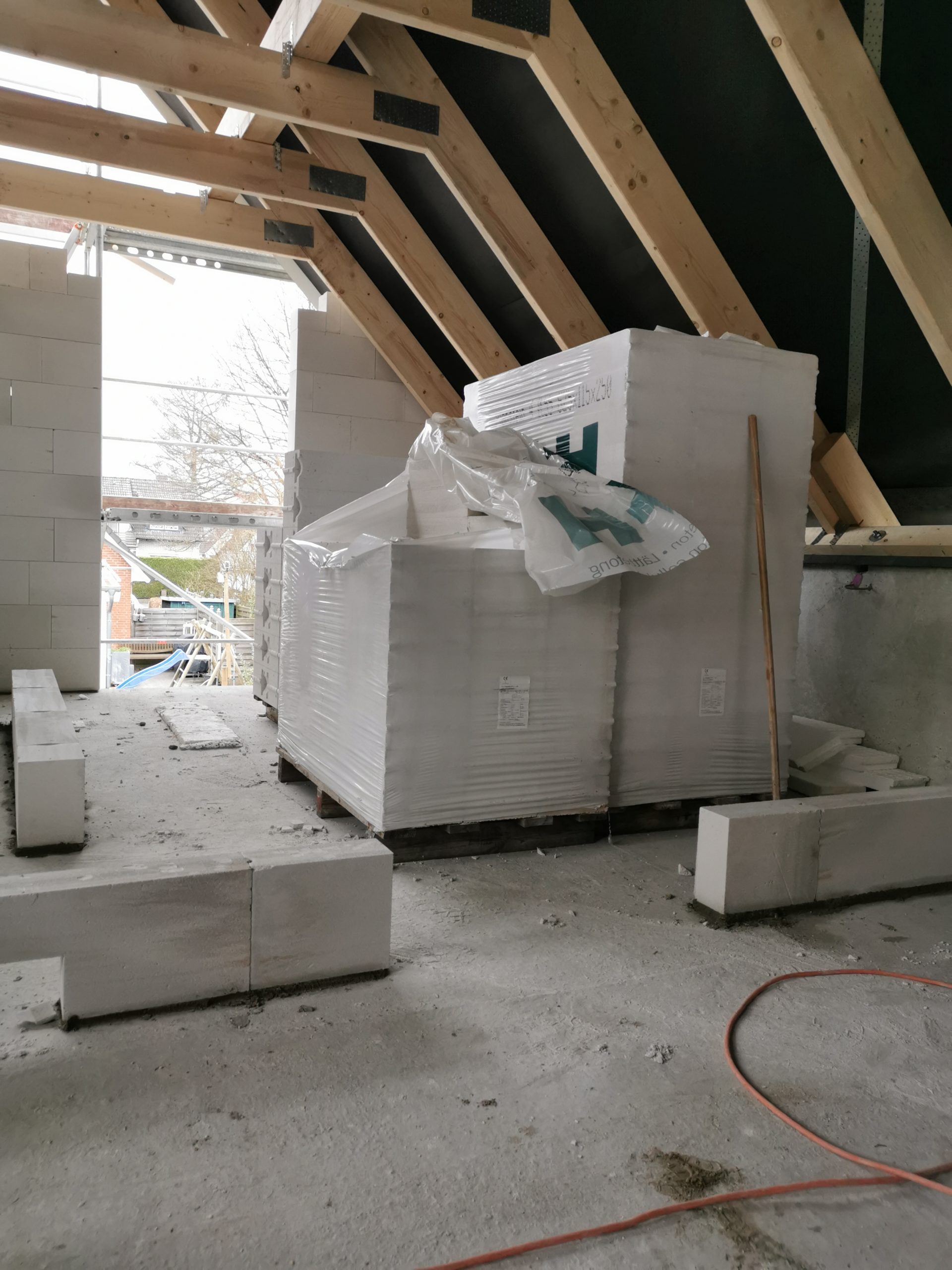 Daher wurde auch schon mit den Innenwänden angefangen. Obwohl diese laut Bauzeitenplan erst 2 Wochen später dran waren.
